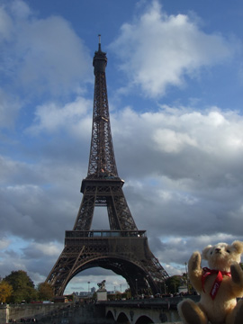 (コメント)初めてのベア作りでしたが、無事に完成!バニラ色の毛並のかわいいベアになりました。主人からのプレゼントについていたカルティエのリボンを首に巻いてあげて、新婚旅行に連れて行きました。