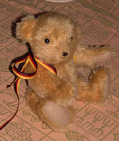 (コメント)私の初ベア!!やっぱりニックには程遠いですね〜(^^;;;実物はもっと可愛いです。(いや、ほんとに。)うまく撮れなかった自分がうらめしい・・・!!わたがあんまり入れられなかったので、スリムなカンジです。