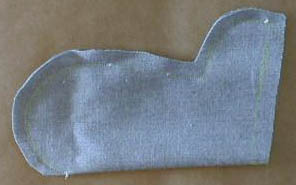 ひっくり返すとこのように縫いあがっています。あとは、「コットンで作る簡単なベア」の作り方と同じように これをもう一枚の腕のパーツ(腕の外側になる部分のパーツ)と中表に縫い合わせてください。